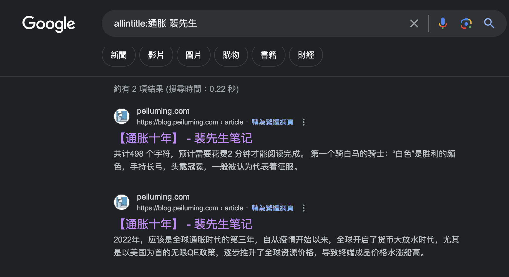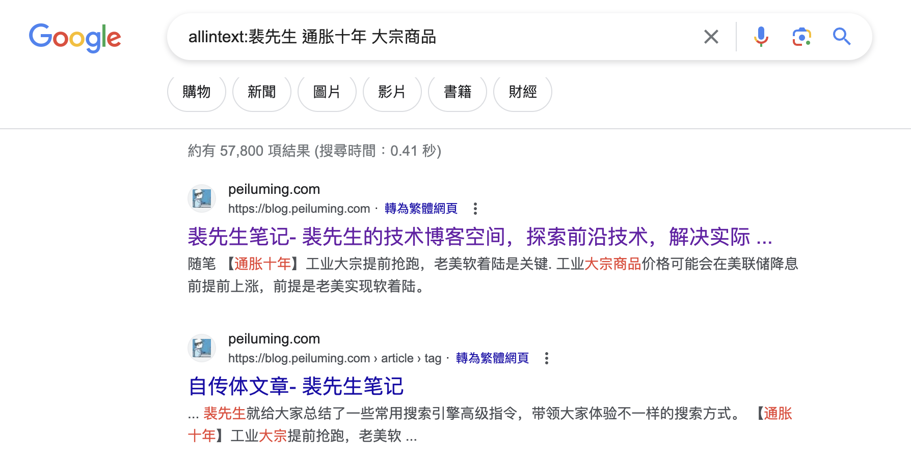 allintitle:通胀(与裴先生intitle:通胀 intitle:裴先生用法类似)