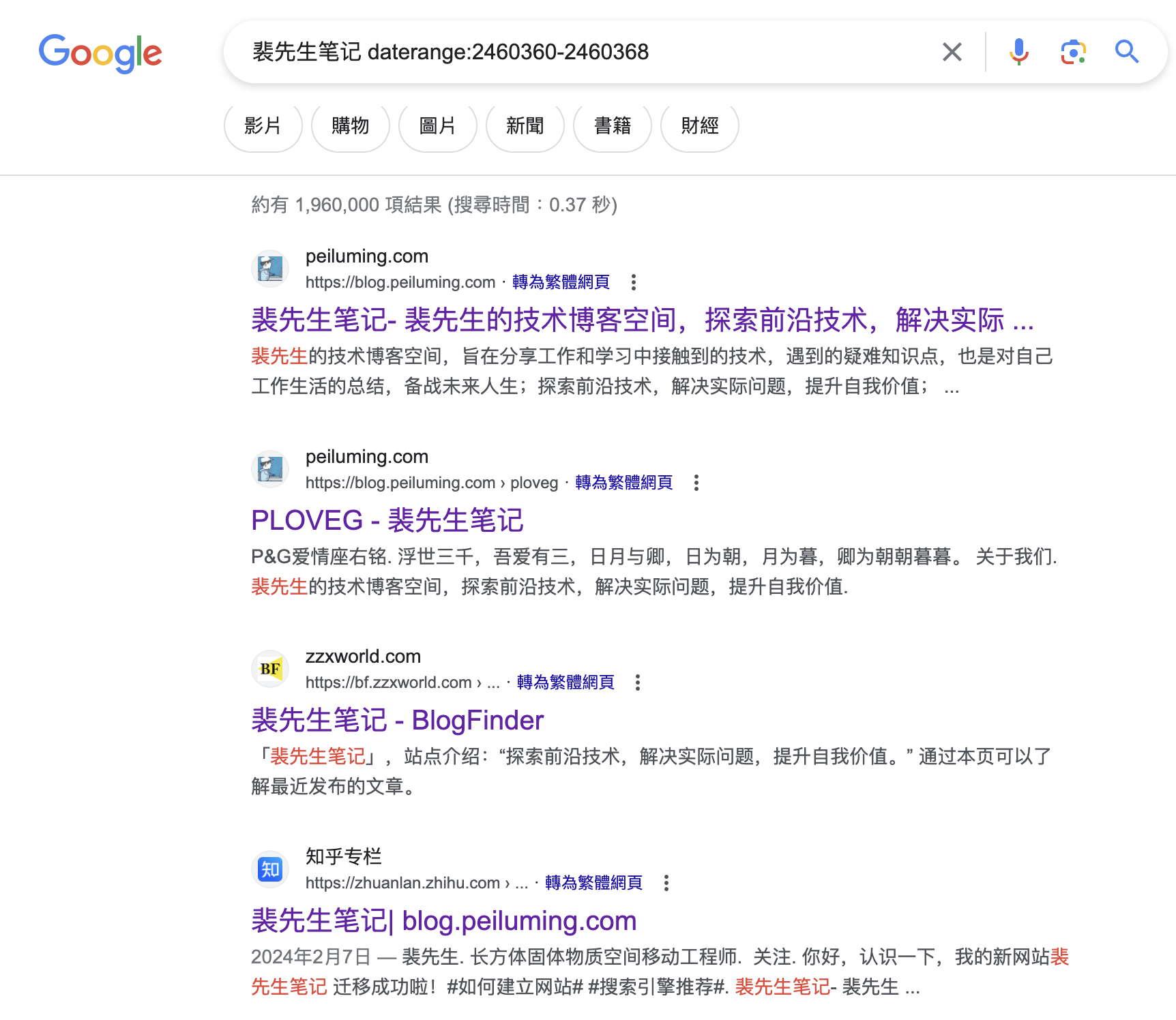 - 配合查询关键词使用,将查询限制在特定的时间段内(按照网站被Google收录时间),指令