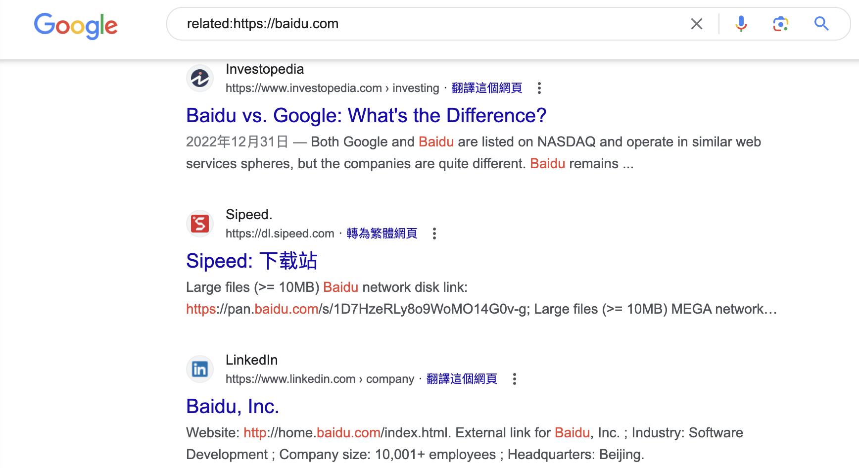 - 查询与某网站相关联的其他网页,一般认为指的是有共同外部链接的网站。